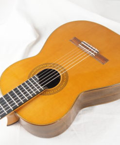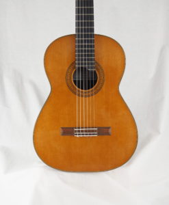 This is the number 190 and the guitar is a double-top using only wood to keep as much as possible a woody sound.