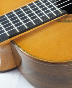 Alexander uses cedar for the outside layer and spruce for the inside layer which is quite unusual. As a result the guitar offers huge overtones and crystal-clear trebles.
