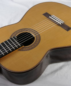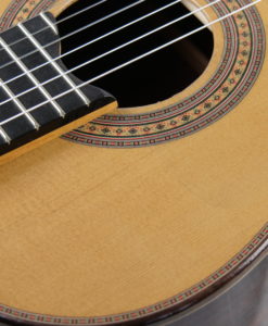 Alexander uses cedar for the outside layer and cedar for the inside layer which is quite unusual. As a result, the guitar offers huge overtones and crystal-clear trebles.