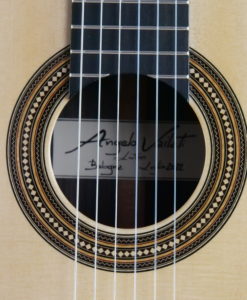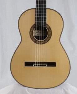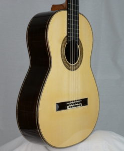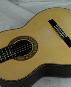 Here is the second guitar we received from Angelo Vailati. This guitar is amazing. Angelo Vailati has been trained partly by Enrico Botelli, José Luis Romanillos, and Daniel Chiesa and is considered as one of the rising stars of the Italian luthiery. This guitar is light as the Antonio Torres guitar and is offering deep basses and clear trebles. The overtones are adding a natural reverberation to the sound. Lots of pleasure with as well a neck which is particularly nicely shaped. Listen to Philippe’s review, you will love it.