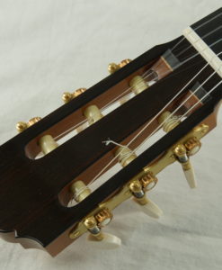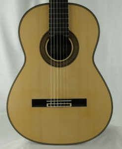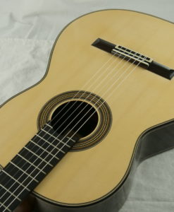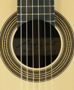 Here is the fourth guitar we received from Angelo Vailati. This guitar is amazing. Angelo Vailati has been trained partly by Enrico Botelli, José Luis Romanillos, and Daniel Chiesa and is considered as one of the rising stars of the Italian luthiery. This guitar is light as the Antonio Torres guitar and is offering deep basses and clear trebles. The overtones are adding a natural reverberation to the sound. Lots of pleasure with as well a neck which is particularly nicely shaped. Listen to Philippe’s review, you will love it.