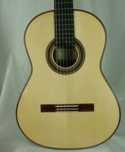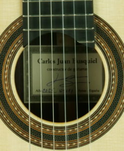 Here is the latest guitar from Carlos Juan Busquiel. The guitar is light and 100% traditional. Carlos is only using traditional construction techniques, combined with the careful selection of high-quality materials. As a result, his guitars have a well-balanced tone, with great projection and clarity.