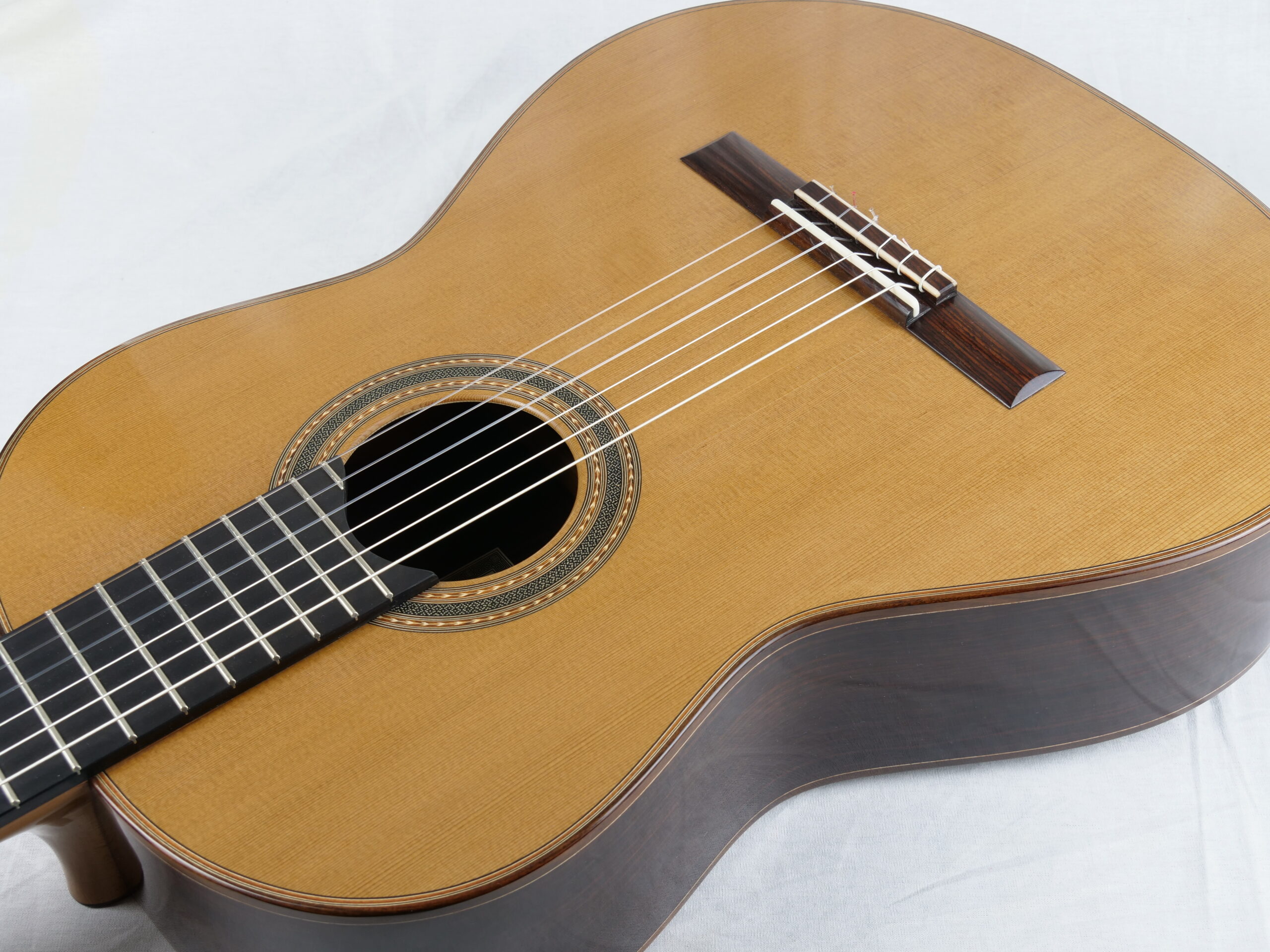 The result is an easy-to-play and very expressive instrument that will compete with the loudest double-tops. Carlos is born in 1980 and this guitar is the number and offers a huge sound with a long sustain. The guitar is super light and the sound direct and thick. The tone is wonderful crystal-clear, traditional, and very open.