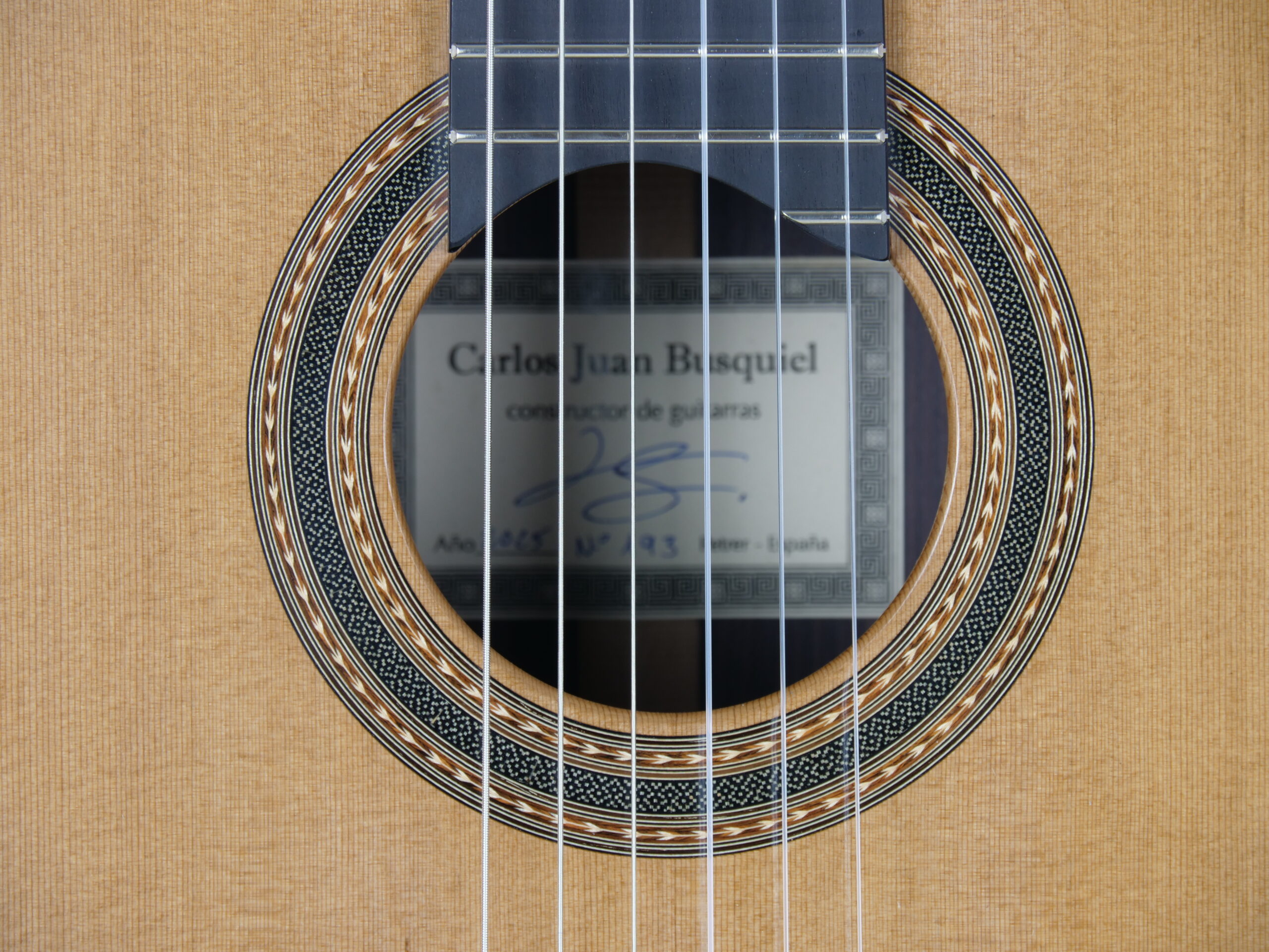 Here is the latest guitar from Carlos Juan Busquiel. The guitar is light and 100% traditional. Carlos is only using traditional construction techniques, combined with the careful selection of high-quality materials. As a result, his guitars have a well-balanced tone, with great projection and clarity.