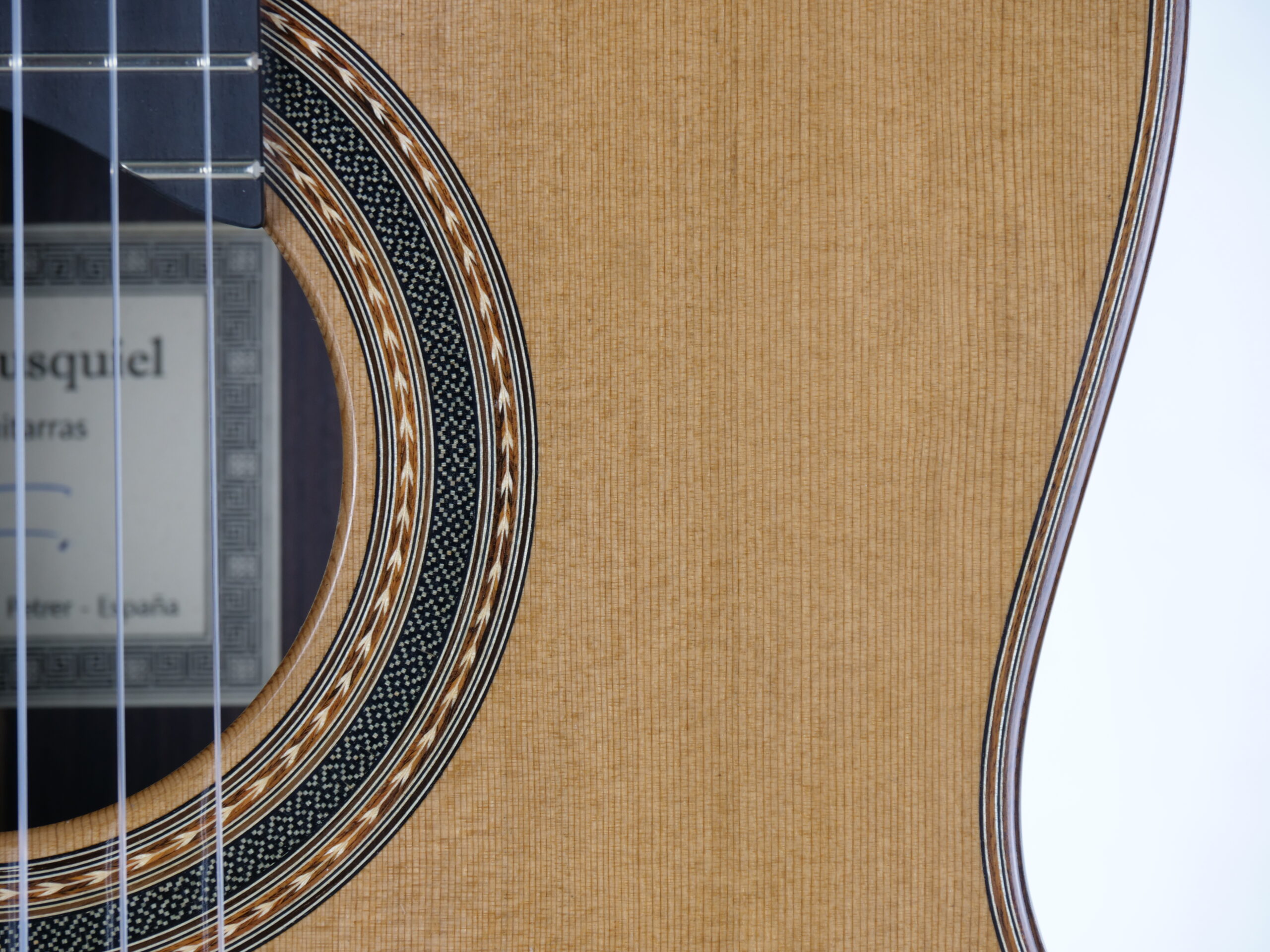 Carlos Juan Busquiel is based in Petrer, east of Alicante, and has extensive experience in classical guitar construction. His musical training began with violin studies in the conservatory, but his interest in instrument construction led him to specialize in the handmade construction of Spanish guitars. Throughout his career, he has worked with renowned masters such as Rafael López Porras and José Luis Romanillos, who have been fundamental in his training as a luthier and in transmitting their knowledge and passion for guitar construction. As a result, he has developed his own style and has created a series of traditional Spanish guitar models that are appreciated by guitarists around the world.
