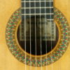 This double-top guitar weighs 1.8 kg. The whole guitar is the result of Charalampos analysis and not a copy from the German double-top. The guitar has a solid cocobolo rosewood back and an unusual for doubletop double-side which gives more mass to the guitar and long sustain.