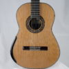 Here is the new double-top design from Charalampos Koumridis. Many things have been changed inside the guitar for more dynamics and a more traditional sound. Philippe and I are wondering when the Koumridis guitars will stop improving. They were already fantastic and now they get better. Like all Koumridis guitars, this one is loud, with thick notes and huge sustain, and a quite natural sounding.
