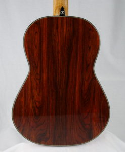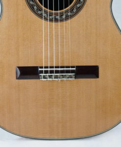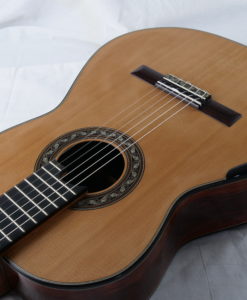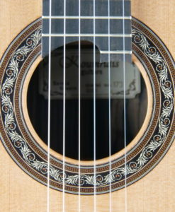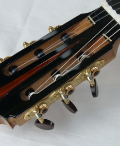 This double-top guitar weighs 1.8 kg. The whole guitar is the result of Charalampos analysis and not a copy from the German double-top. The guitar has a solid cocobolo rosewood back and an unusual for doubletop double-side which gives more mass to the guitar and long sustain.