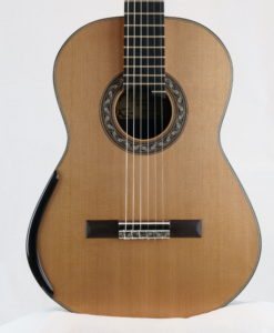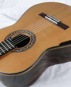 Here we have a lattice braced guitar inspired by the Greg Smallman guitars. Everything has been said on the Greg Smallman sound, this lattice model of Charalampos sounds to us even better. You will find singing warm trebles, very thick notes with a long sustain and as well deep basses more natural sounding than the one you can find on the Greg Smallman guitars. Charalampos has worked in th direction of a more natural sound. The result is amazing.