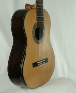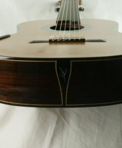 Here we have a lattice braced guitar inspired by the Greg Smallman guitars. Everything has been said on the Greg Smallman sound, this lattice model of Charalampos sounds to us even better. You will find singing warm trebles, very thick notes with a long sustain and as well deep basses more natural sounding than the one you can find on the Greg Smallman guitars. Charalampos has worked in th direction of a more natural sound. The result is amazing.