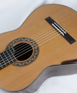 Huge sound, and fantastic tone colors. The Koumridis lattice guitars are getting better and better. This guitar (since the last No 215 & 211) is a new lattice model from Charalampos Koumridis. We already said that Charalampos Koumridis is surely our rising star. The guitar includes a frame inside the guitar which reduces the guitar’s weight and allows more dynamics with a traditional tone.