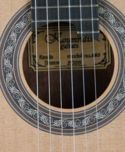 Huge sound, and fantastic tone colors. The Koumridis lattice guitars are getting better and better. This guitar (since the last No 215 & 211) is a new lattice model from Charalampos Koumridis. We already said that Charalampos Koumridis is surely our rising star. The guitar includes a frame inside the guitar which reduces the guitar’s weight and allows more dynamics with a traditional tone.