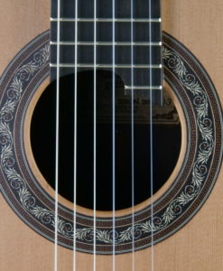 Here is a new concept of Traditional guitar : the top is made of cedar without any carbon, just wood. The sides however are reinforced with a frame inside the guitar. Charalampos took some part of the his successful lattice guitars and applies it to a traditional top guitar. As a result, the guitar is light but with a louder sound and still a traditional tone.
