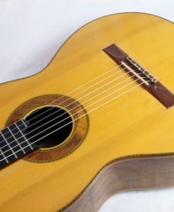 Christian Koehn is a German luthier based in Berlin and making both traditional guitars and Double-tops. Here is a unique opportunity to get a great traditional braced guitar from Christian Koehn in very good condition with a wonderful spruce top and an amazing South American rosewood. The traditional guitars of Christian are loud and offer a crystal clear sound. The craftsmanship is exquisite. For those who want to avoid many years of waiting to get a first-class German guitar.