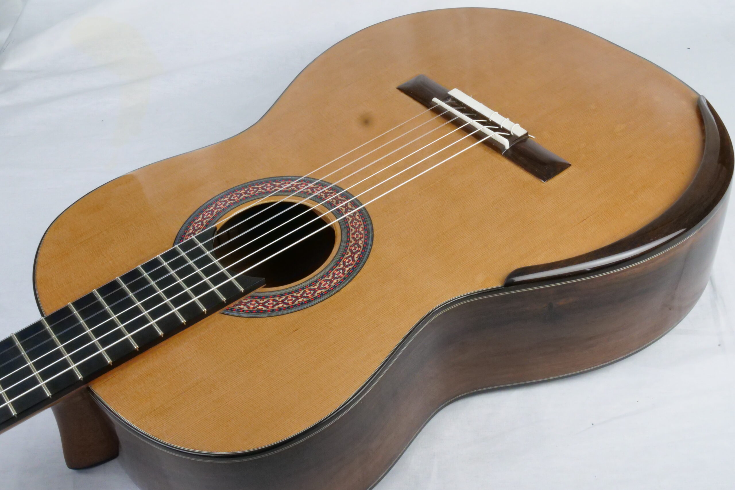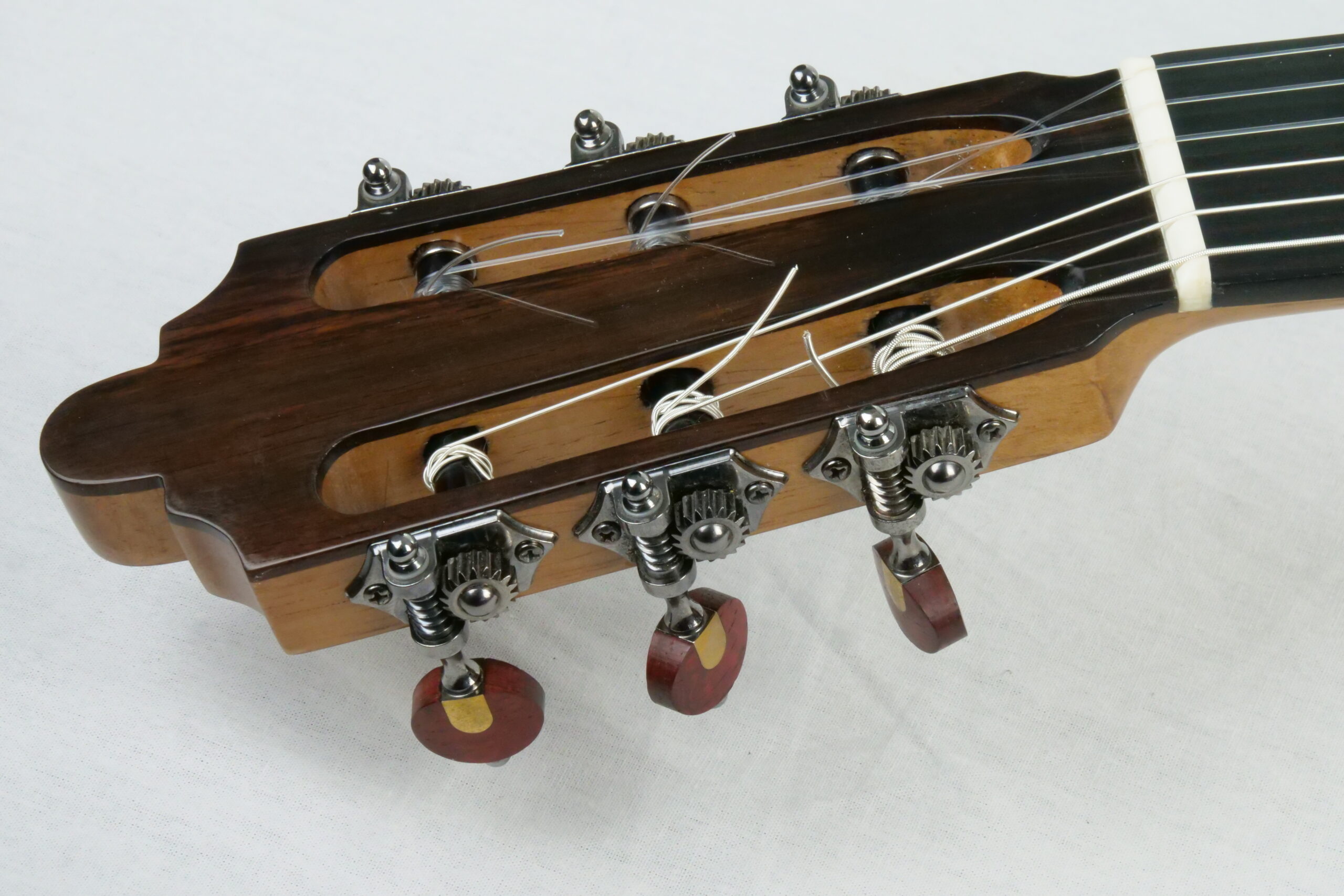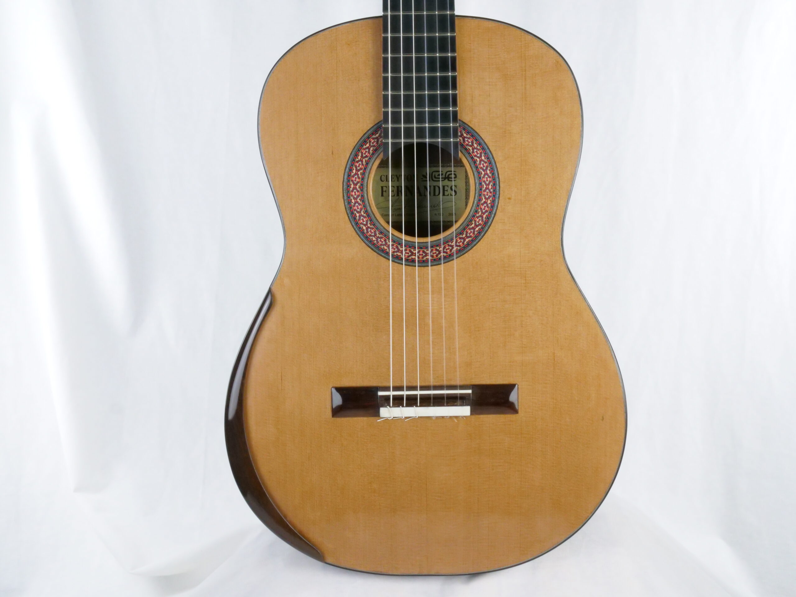 Cleyton Fernandes is a young talented luthier. He played for a long time with a Zbigniew Gnatek and got his inspiration from the Australian school of lutherie. Cleyton is aiming at building loud guitars but with a traditional sound and dynamics which can offer a wide range of playing. This guitar offers dark and deep basses and clear and creamy trebles. The string separation is amazing and the sustain amazing.