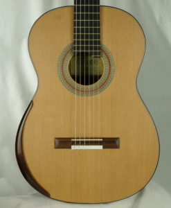Introducing a new luthier is a small achievement for us. We spend our time looking for new luthiers and it is very rare that we succeed to find a new luthier which meets all our requirements. As you know, we do purchase all the new guitars available in our showroom and do not take any guitar on consignment from the luthiers. We always refused to take any guitar on consignment from the luthiers because first, we think that it is unfair for them and secondly because generally, the good guitars are not available for sale at the luthier’s workshop (Most of our luthiers have at least 6 month-waiting lists). So for us, it is a fruit of a long work to convince a luthier to sell one of his guitars.