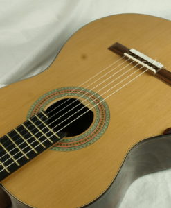 Cleyton Fernandes is a young talented luthier. He played for a long time with a Zbigniew Gnatek and got his inspiration from the Australian school of lutherie. Cleyton is aiming at building loud guitars but with a traditional sound and dynamics which can offer a wide range of playing. This guitar offers dark and deep basses and clear and creamy trebles. The string separation is amazing and the sustain amazing. This number 88 is very much different for the 2021 we had for sale : the sound is definitely thicker and warmer.
