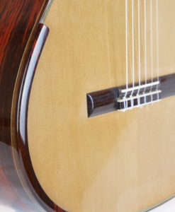 We have been blown away by the first Constantin Dumitriu’s lattice guitar that we received earlier this year. This 2nd guitar is even better than the first one. The sound is loud, warm, and well balanced. The guitar does not have the boxy sound in the bass that some bad lattice have. Constantin implemented a top with a double-tension which is amazing and which is used to tune the top and increase the resonnances. I try to explain the system of Constantin in the review video which will be released soon.. The playability is amazing. Last but not least a very affordable concert guitar! The important review video will be released next week.
