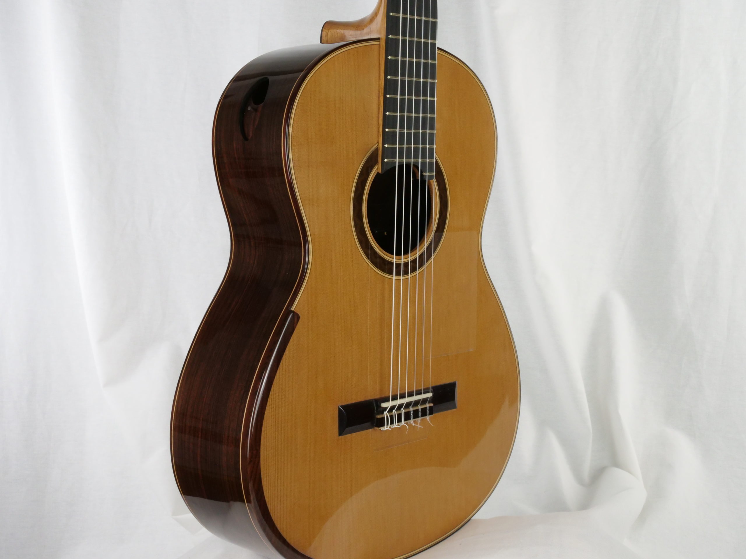 Constantin is a very experienced luthier: he knows very well most of the great guitars and is very driven by innovation. He is mostly searching for a ‘natural/traditional’ warm sound and a great dynamic. He is very famous in Roumania and has 14 months of waiting time.
