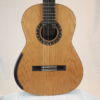 This double top gives the response a surprising liveliness. Whereas certains double-tops could be too dark and/or too projective with a short sustain : this one is well balanced between projection and sustain. Although the overall sound color is warm , there is some brightness in the guitar which produces an elegant musicality. The notes are thick and creamy. Playability is more than perfect.