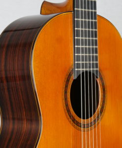 The sound is of course what you could expect from a Friederich made during the golden years of Daniel Friederich. The guitar sings like in a dream, the trebles are surprisingly thick and long. Most importantly, the condition of the guitar is amazing. The polish has been maintained recently and the top is free of crack. The first owner of this guitar was Roberto Aussel – an Argentian player living in France – who recorded some LPs with this guitar. The second owner was a professional player who took good care of the guitar.
