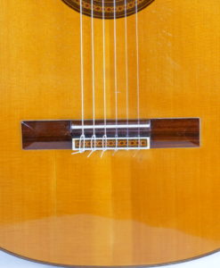 - Spruce top with a repair under the bridge, which has been professionally repaired.