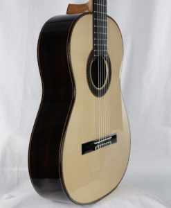 Italy is surely a country where you could find the very best traditional guitars in the world. Here is a guitar from Daniele Marrabello who is a young luthier based in Milan. His guitars are inspired by the Spanish Torres guitars with a very light body and develop a huge sound that is simply perfect. The guitar is already amazing and will get better with time because of the spruce. Listen to Philippe’s review, you will love it.