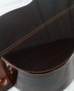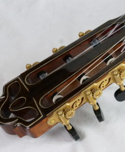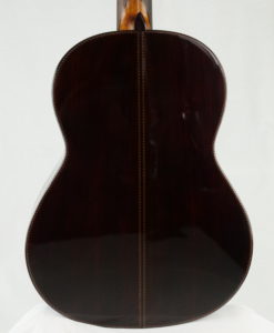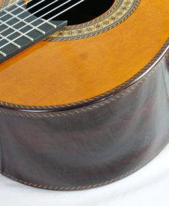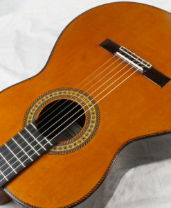 This lattice classical guitar is a dream: the bestselling Portentosa has been revisited with a lattice top. The sound remains typical of Dieter Hopf classical guitars but with more power and more definition. It has very fat trebles with dark basses. A very ‘romantic’ or ‘Spanish’ sound but with huge overtones and long sustain. The neck is perfect. It is one of the best guitars in the world. The playability is great; the neck is slightly thicker than one normal guitar and oiled which gives a nice feeling for the left hand.