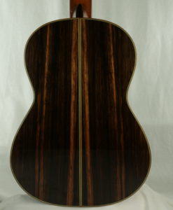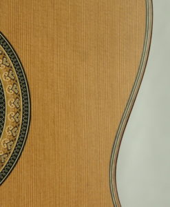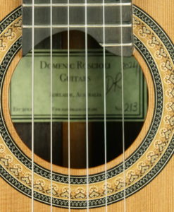 Domenic Roscioli’s guitars are similar but with their own personality to Jim Redgate’s guitars: both are light with the objective of capturing a more natural sound. Both have a rather thick for a more woody sound and a lighter body.