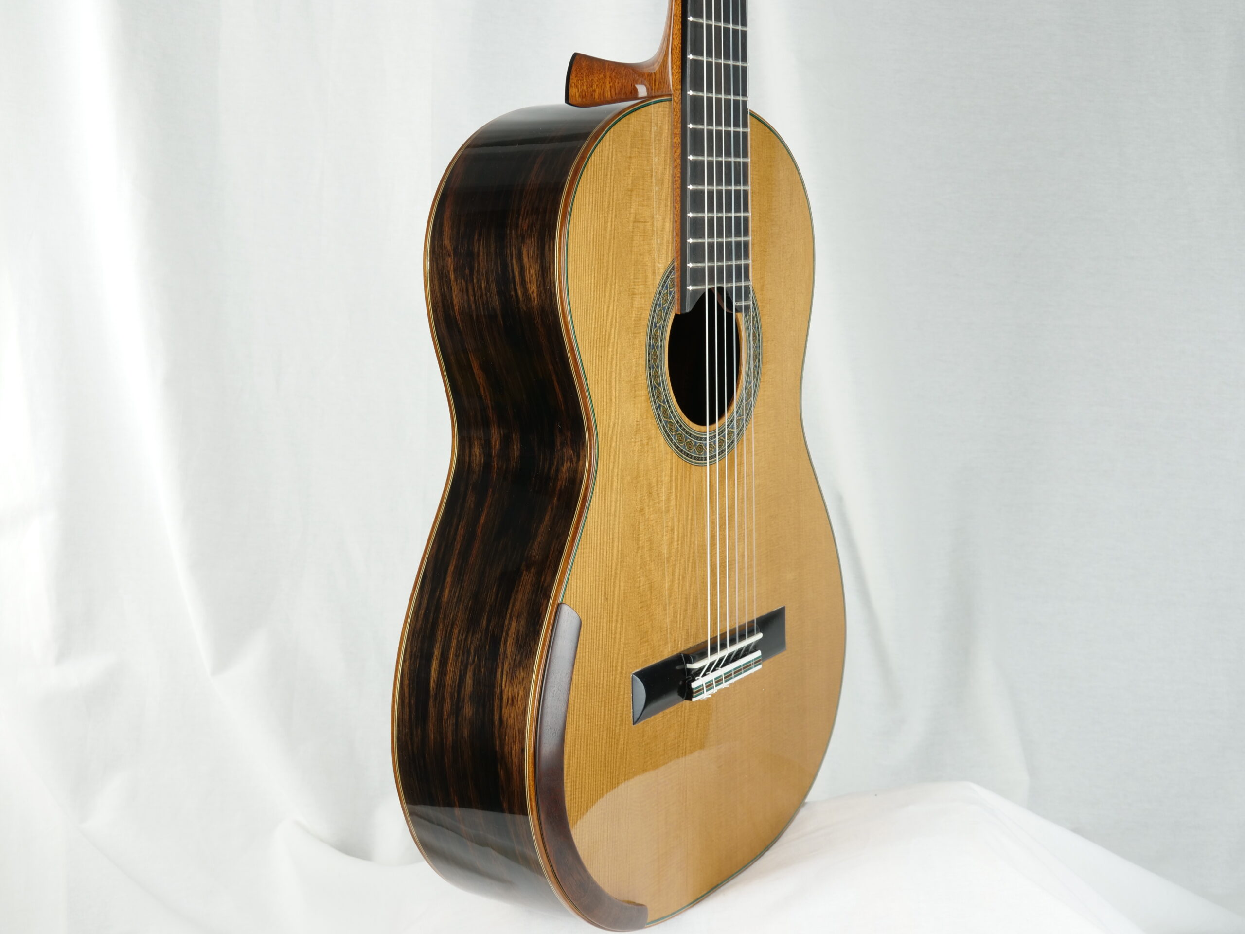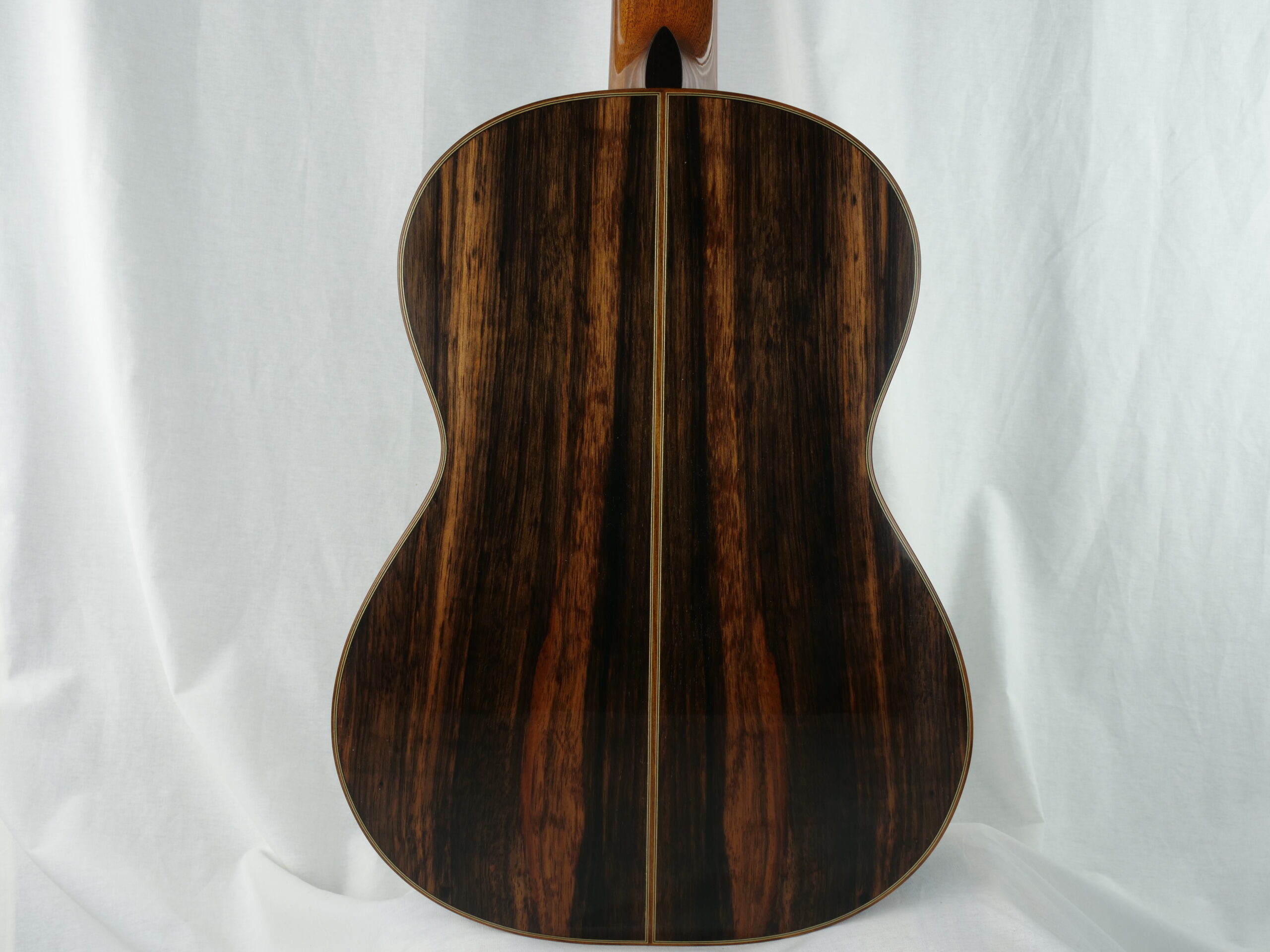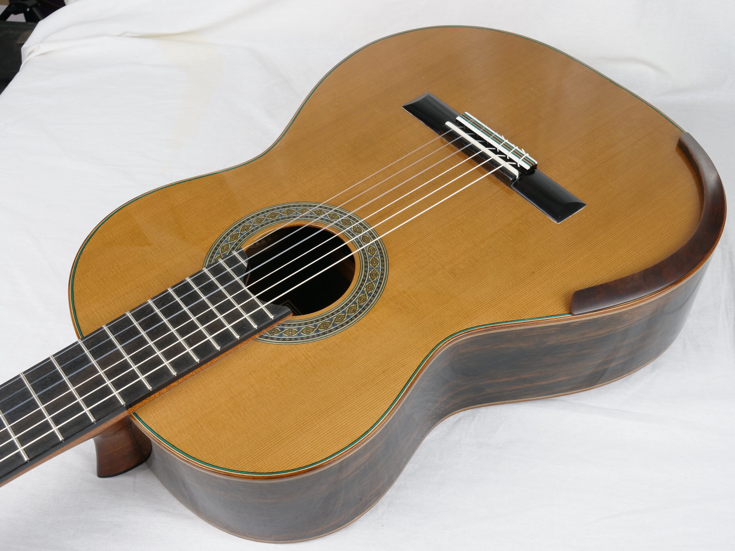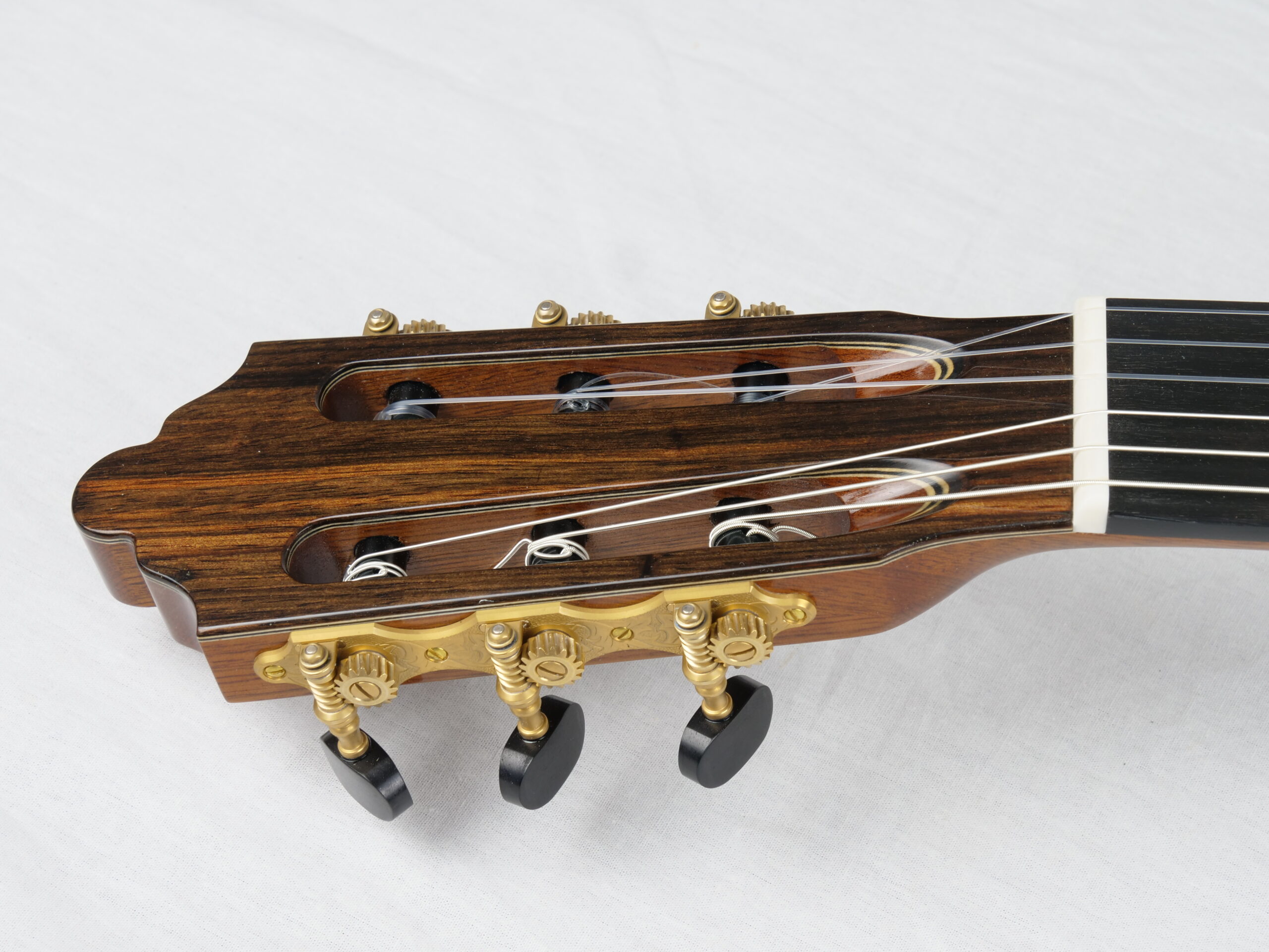 Domenic Roscioli’s guitars are similar but with their own personality to Jim Redgate’s guitars: both are light with the objective of capturing a more natural sound. Both have a rather thick for a more woody sound and a lighter body.