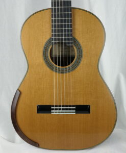 Domenic Roscioli’s guitars are similar but with their own personality to Jim Redgate’s guitars: both are light with the objective of capturing a more natural sound. Both have a rather thick for a more woody sound and a lighter body.