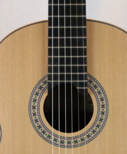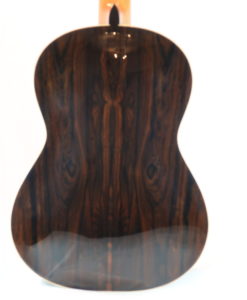 - The back and sides are in Ziricote with nice binding in maple. There is some green filets all around the guitar. The polish is nitrocellulose which quite a solid polish. Domenic polished the inside of the guitar as well to prevent from moisture. (nice idea).