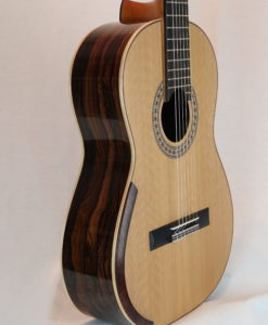 We are happy to list a new luthier, his name is Domenic Roscioli and he is from Australian. Domenic has been making guitar since the 90s and established his brand in 2001. He made 172 guitars in 20 years. Domenic build his first guitar with the help of a luthier that we know very well John Price and then developed his skills with the great Jim Redgate who became his mentor and taught him the secrets of making lattice guitars. So his guitars share a lot of common principles with Jim’s guitars. Jim Redgate was with us last winter when we asked him which luthier he would recommend, he says Domenic Roscioli.