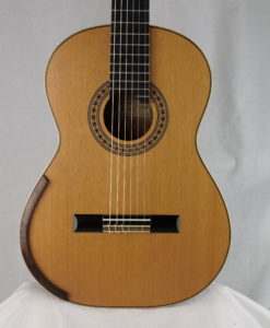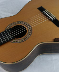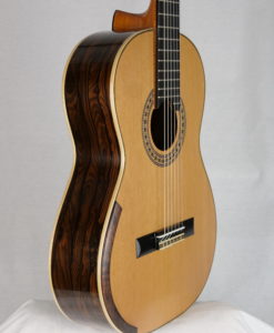 Domenic Roscioli’s guitars are similar but with their own personality to Jim Redgate guitars: both are light with the objective to capture a more natural sound. Both have a rather thick for a more woody sound and a lighter body.