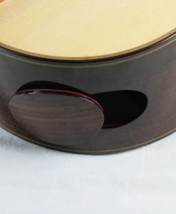 For a change: here is a fan-braced guitar from an amazing Canadian builder Douglass Scott. Douglass makes traditional guitars with a crystal-clear sound and great dynamics. What are his guitars offering? Simply a broader tonal palette, increased sustain, increased warmth, deeper bass, and more trebles. This No 212 comes with the following options, an armrest, Alessi tuners, and a sound port with a magnetic cover.