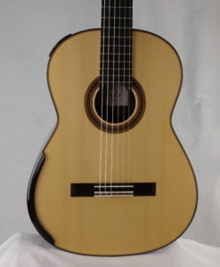 My guitar design is at heart very traditional. You might recognize the inspiration of Friederich, Fleta and Torres for example in the construction. This is the best way I know to achieve an instrument with a lot of vitality, malleability, and colour, and to create the overall character of sound that I like to hear. This means a broad, linear, intuitive response in both tone colour and dynamic level; a disciplined, noble sound quality with even sustain note-to-note; and exceptional brilliance.