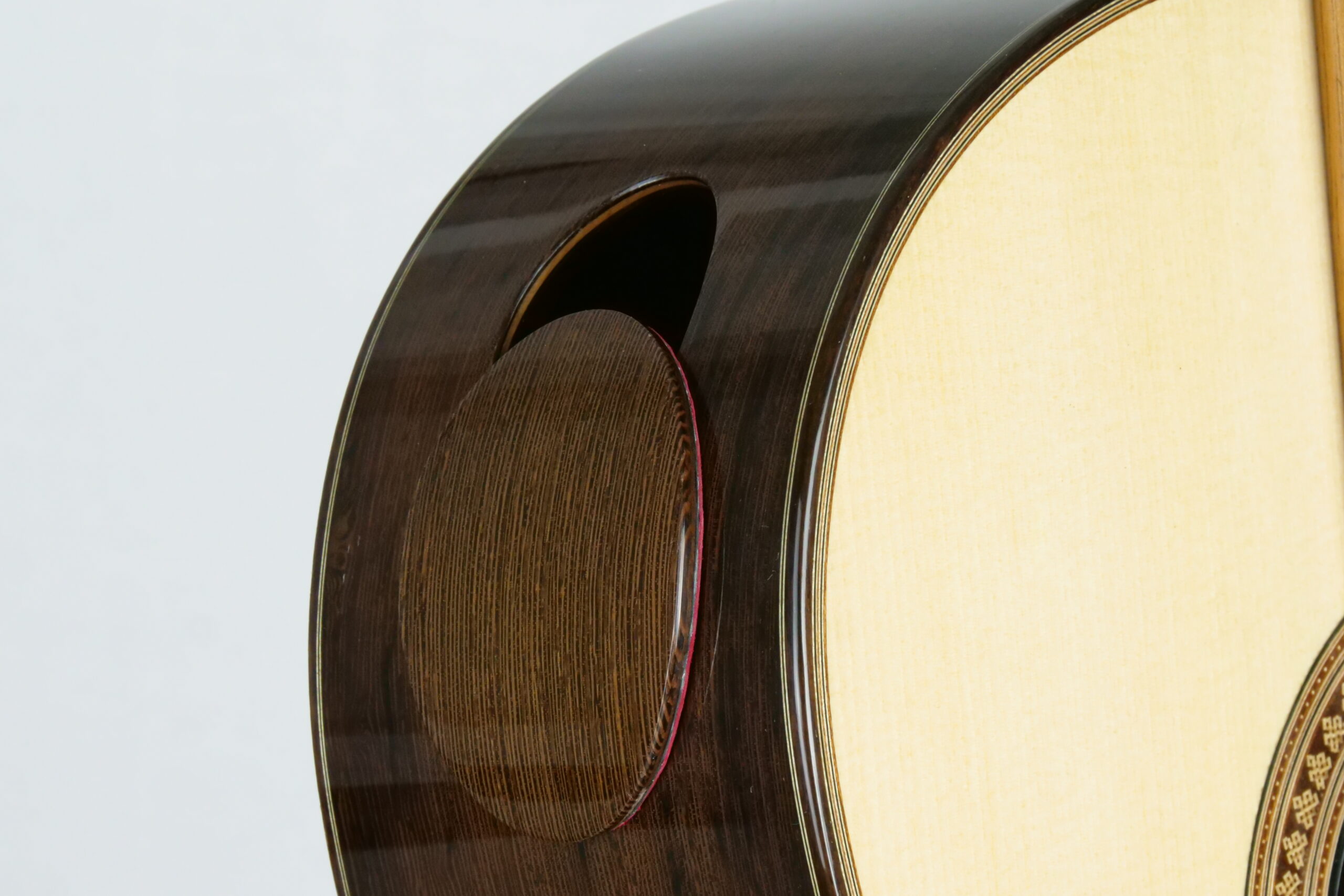 My guitar design is at heart very traditional. You might recognize the inspiration of Friederich, Fleta and Torres for example in the construction. This is the best way I know to achieve an instrument with a lot of vitality, malleability, and colour, and to create the overall character of sound that I like to hear. This means a broad, linear, intuitive response in both tone colour and dynamic level; a disciplined, noble sound quality with even sustain note-to-note; and exceptional brilliance.