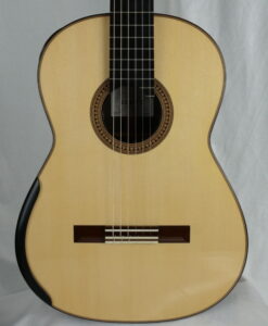 My guitar design is at heart very traditional. You might recognize the inspiration of Friederich, Fleta and Torres for example in the construction. This is the best way I know to achieve an instrument with a lot of vitality, malleability, and colour, and to create the overall character of sound that I like to hear. This means a broad, linear, intuitive response in both tone colour and dynamic level; a disciplined, noble sound quality with even sustain note-to-note; and exceptional brilliance.
