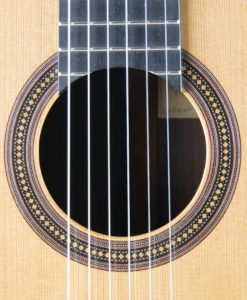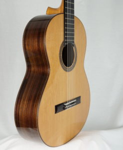 François Léonard is a French builder who is making ‘traditional’ lattice guitars. He is aiming first at building guitars with a sound and a tone color in line with the French lutherie school: which means traditional sound rather clear like the Friederich with some dynamics. To achieve this target his guitar are including a lattice braced top with no balsa and no carbon on a solid body. As a result a loud guitar which remains very traditional in sound which is offering the player a lot of musical possibilities. Lots of pleasure.