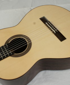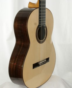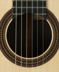 François Léonard is a French builder who is making ‘traditional’ lattice guitars. He is aiming first at building guitars with a sound and a tone color in line with the French lutherie school: which means traditional sound rather clear like the Friederich with some dynamics. To achieve this target his guitar are including a lattice braced top with no balsa and no carbon on a solid body. As a result a loud guitar which remains very traditional in sound which is offering the player a lot of musical possibilities. Lots of pleasure.
