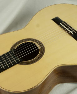 François Léonard is a French builder who is making ‘traditional’ lattice guitars. He is aiming first at building guitars with a sound and a tone color in line with the French lutherie school: which means traditional sound rather clear like the Friederich with some dynamics. To achieve this target his guitar are including a lattice braced top with no balsa and no carbon on a solid body. As a result a loud guitar which remains very traditional in sound which is offering the player a lot of musical possibilities. Lots of pleasure.