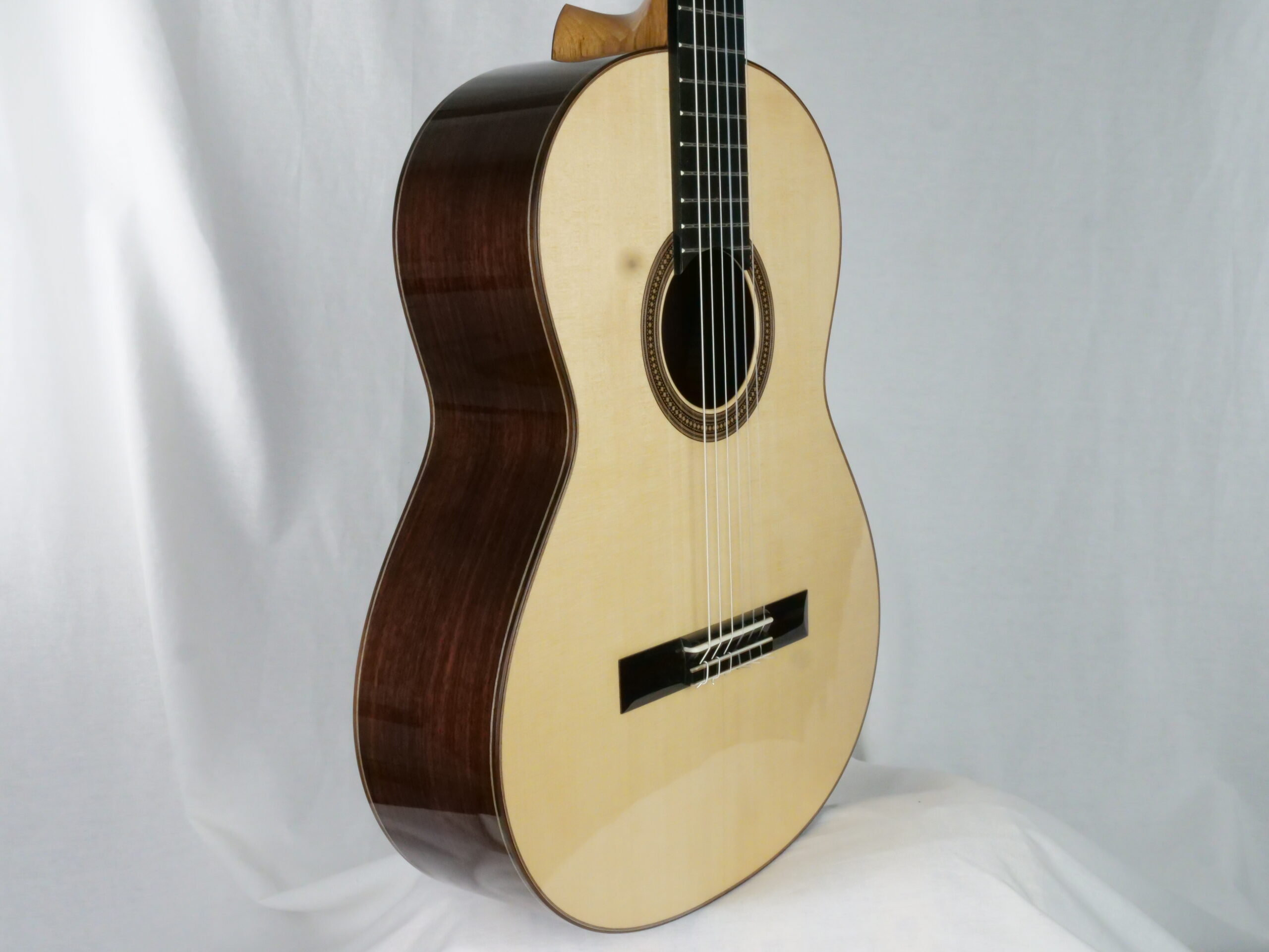 The cedar brings an punchy immediate sound and the mapple – which was the wood used by Antonio Torres and for all the violin – brings a certain complexity to the sound and some. warmness.