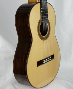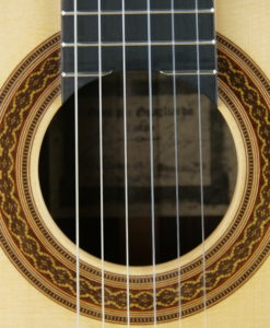 We had the chance to list in 2021 a cedar top guitar from Giuseppe Guagliardo. Here is a spruce top with all the sound complexity of the spruce. The guitar is offering a sweet sound with a huge string separation and thick and balance between brightness and warmness. The sound is crystal clear and the playability is amazing. We receive many traditional guitars and select rarely one of them because of the tough competition of double tops and lattice. Here is a pure traditional sound that we really like.