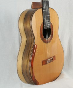 As soon as you open the case, you are gripped by the beauty of the essences, the scent of the wood and the instrument’s unusual appearance; you’re in the presence of a classical guitar that has been made in the purest Australian tradition.