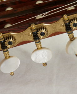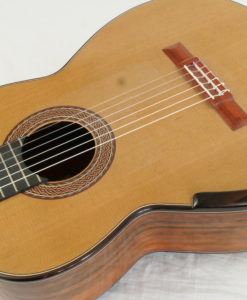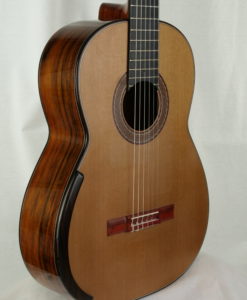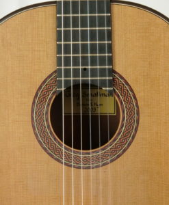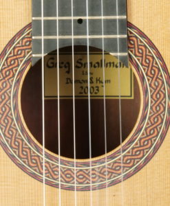 Greg Smallman has been one of the top innovators in the Classical guitar building world for many years. Although his instruments may not seem all that different from the norm on the outside, strike one note and you will know straight away that something very different is happening beneath your fingertips. The Greg Smallman & Sons guitars are unlike any classical guitar we have ever played. It is exceptionally loud–even without having to drive it too hard; this guitar will genuinely fill up a room with profound and complex tones. It maintains a beautiful and lush voice at full volume with no distortion or fatness to be found anywhere. Greg has achieved this sound by making radical changes to the inner structure of the guitar, utilizing lattice bracing and carbon fiber combined with an incredibly thin top plate.