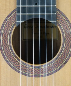 Greg Smallman has been one of the top innovators in the Classical guitar building world for many years. Although his instruments may not seem all that different from the norm on the outside, strike one note and you will know straight away that something very different is happening beneath your fingertips. The Greg Smallman & Sons guitars are unlike any classical guitar we have ever played. It is exceptionally loud–even without having to drive it too hard; this guitar will genuinely fill up a room with profound and complex tones. It maintains a beautiful and lush voice at full volume with no distortion or fatness to be found anywhere. Greg has achieved this sound by making radical changes to the inner structure of the guitar, utilizing lattice bracing and carbon fiber combined with an incredibly thin top plate.