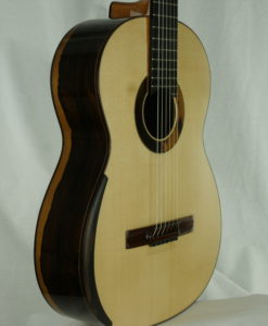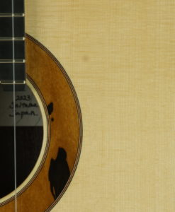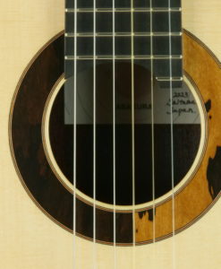 Don’t miss this amazing luthier from Japan. Hiroyasu is building guitars very much inspired by the concept of Radial bracing invented in Australia by Simon Marty and Robin Moyes. The bracing (balsa and carbon) is based on a radial arrangement of the bars around the saddle resulting in an increased volume and quicker response, the back and sides are laminated. This 2023 is loud with crystal clear but very thick trebles, the string separation is amazing and the sustain is endless. The playability is perfect. Just everything you need!