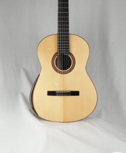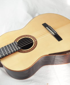 Jan Schneider is maybe one of the most famous luthiers from the Czech Republic. We usually list in our showroom his double-tops which are surely the best double-top value for money. Here is a new model that he calls traditional because there is no carbon and no Nomex. In fact, this spruce top guitar is a mix between a traditional guitar and a modern one with a radial bracing and a frame. The guitar is light, loud, traditional sounding with the soft tone of the spruce. A great concert guitar with everything one needs for a price below 3400€. Everything is said!