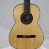 For once, here is a French luthier Jean-Marie Fouilleul who is offering an innovative guitar halfway between a traditional guitar and a lattice guitar. The guitar is a sort of traditional braced guitar with however some carbon in the bracing and a support called Arche inside to strengthen the sides. The craftsmanship is exquisite. The result: a loud guitar with a crystal-clear sound with a great string separation. The guitar has been made in 2016 but is in close to new condition.