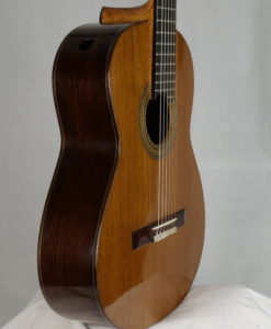 Jean-Noel Lebreton is an experienced French luthier who makes traditional guitars in the respect of the Bouchet and Friederich tradition. As a traditional guitar maker, Jean-Noel has however always been curious about the innovation. Since a couple of years, Jean-Noel has been making as well some Doubletop guitars. We tried some of his doubletop model and finally as him to build for our showroom a guitar with some of our requirements. Because we are sort of familiar to great DT and DT guitar makers, we asked Jean-Noel to include in this DT guitar some of the designs we thought could have positive effects. Jean-Noel did better than take our requirements he improved then and added other ones.